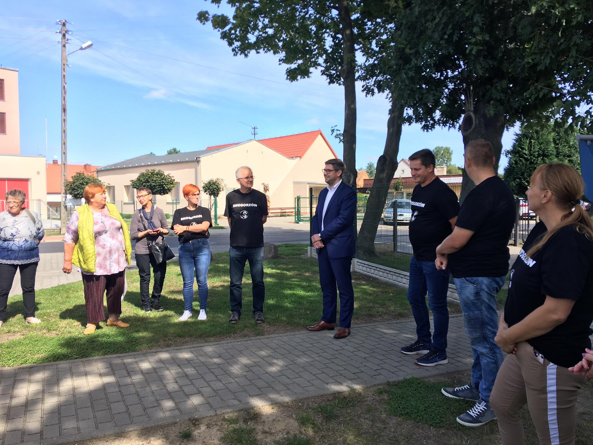 Gości powitali członkowie: Stowarzyszenia Nasz Smogorzów i Rady Sołeckiej (w koszulkach ze smogorzowskim smokiem) oraz I zastępca burmistrza Namysłowa p. Krzysztof Mucha. Gospodarzy przywitała natomiast pani Danuta Bajak, Prezes Zarządu OZRiOS Opole i organizator wyjazdu.